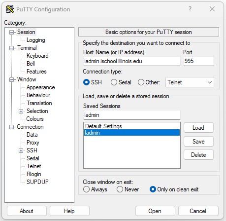 To open a new SSH session click "Open." You should not be required to enter your password.